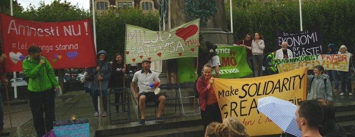 Ruotsin Jordens Vänner oli esillä erityisesti konferenssin avajaisissa Folkets Parketissa, missä järjestön entinen pj. Ellie Civjet oli yksi kolmesta pääpuhujasta. Ellie veti myös päätöspäivän mielenosoituksen teemalla Rättvist i Malmö / Justice in Malmö.
